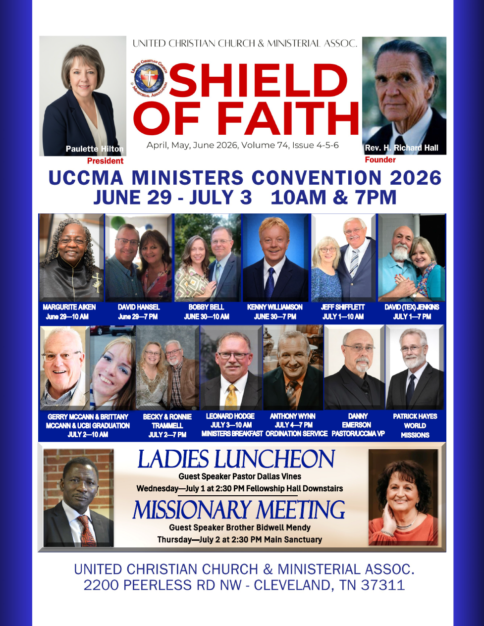 The United Christian Church and Ministerial Association (UCCMA) is a non-denominational organization established in 1956, aiming to unite and support ministers from various fundamental and Pentecostal denominations. With its roots in Cleveland, Tennessee, and founded by Rev. H. Richard Hall, UCCMA has grown into one of the largest Fundamental-Pentecostal fellowships worldwide, encompassing over 20,000 licensed and ordained ministers, evangelists, and missionaries.